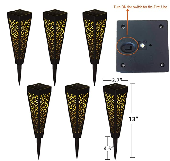 The solar stake lights come with 8 Lumens, and they prouduce warm white glow at night, throw off attractive and vivid flame pattern on the ground. The outdoor lights is ideal for your garden, pathway, walkway, front yard, back yard, driveway, flower bed, lawn and Christmas decor.